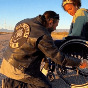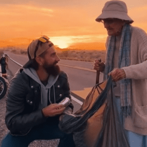 The Biker and the Lady with the Trash Bag – A Story of Quiet Strength and Unexpected Kindness