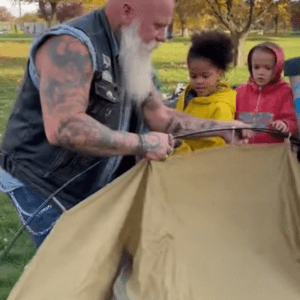 The biker who saved a windy picnic day: how one rider helped a group of kids rebuild their blown-down tent