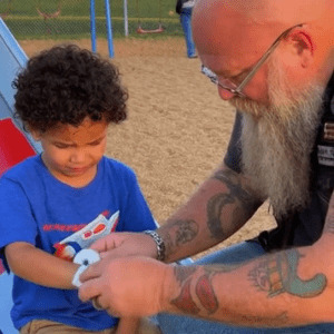 A rugged biker steps into an unexpected momentDuke “Roadbear” Thompson never blended easily into parks or playgrounds. With his massive frame, thick beard, and a leather vest…