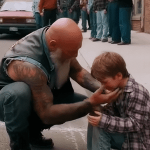 THE BIKER WHO WALKED BACK INTO THE STORE AND GAVE A BOY HIS DIGNITY