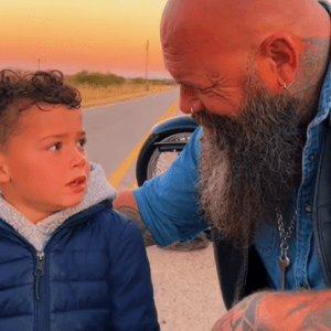 A Stillness That Didn’t Feel Like PlayThe biker noticed the boy before anyone else did. Not because the kid was waving or yelling, but because he wasn’t…