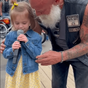 WHEN A BIKER HELPED A SHY GIRL FIND HER VOICE IN FRONT OF A CROWD
