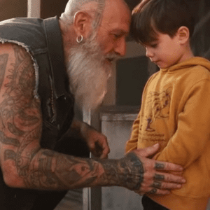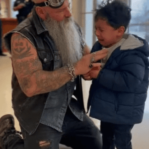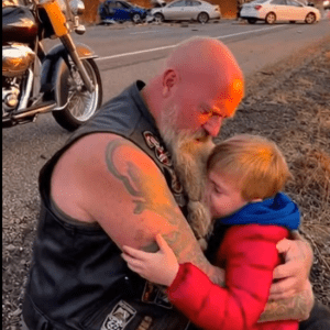 When a Biker Sat With a Grieving Boy: A Quiet Moment of Comfort After Loss