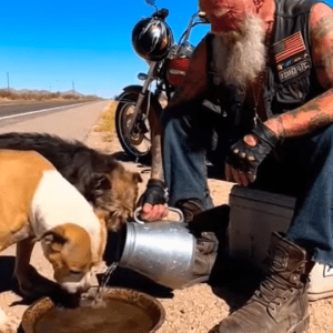 A Biker’s Small Act of Kindness: Sharing Water With a Stray Dog Under the Blazing Sun