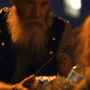 The sun had just dipped below the horizon, streaking the sky with fiery orange and deep purple. Jake, a rugged biker with a leather jacket worn thin…