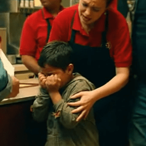 A Small Moment Outside a Convenience Store The boy stood near the convenience store door, shoulders pulled in tight, fingers clenched around the fraying strap of his…