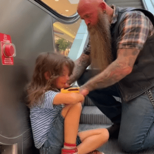 Biker Steps In During Escalator Emergency and Helps a Scared Child Stay Safe