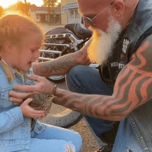 A BIKER’S QUIET KINDNESS HELPS A LITTLE GIRL SAVE A BROKEN BIRD