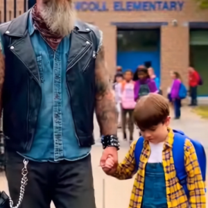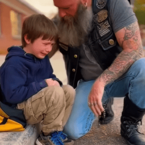 A Biker’s Quiet Walk: How Patience Helped a Scared Boy Face School Again