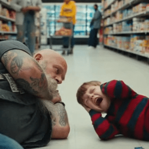 A Biker’s Quiet Act of Love Redefines Strength in the Middle of a Grocery Store