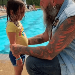 Biker Jumps Into Action at a Public Pool and Gives a Little Girl Her Next Breath