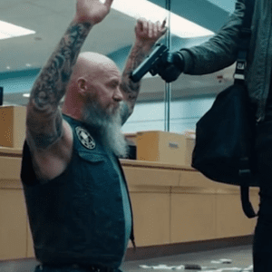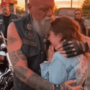 A TOUGH AMERICAN BIKER STOOD BETWEEN A BANK ROBBER AND AN INNOCENT CUSTOMER—AND WALKED HER TO SAFETY