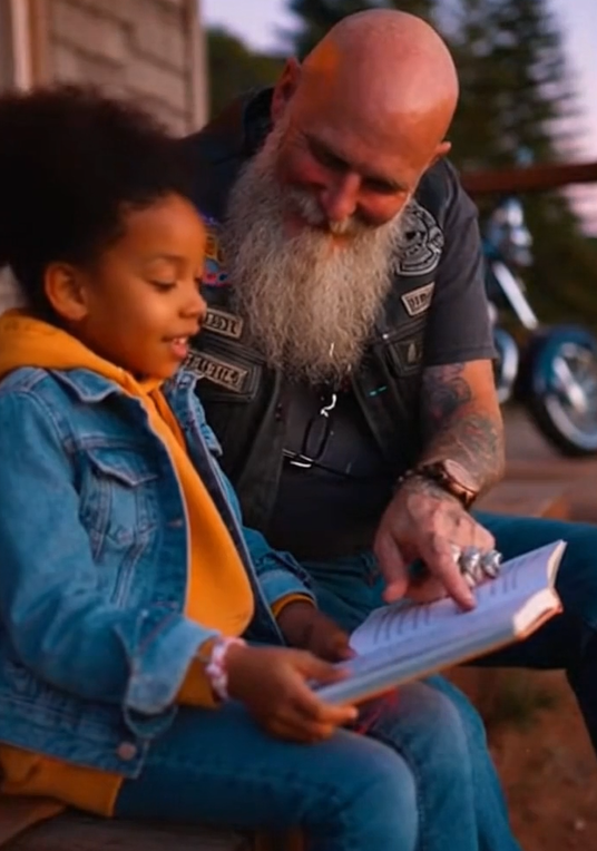 This story isn’t about reading alone. It’s about what happens when someone sees a child struggling and decides to stay. It’s about consistency, patience, and believing that growth doesn’t need to be loud to be meaningful. One biker, one book, and one little girl proved that kindness can change a future—one word at a time.