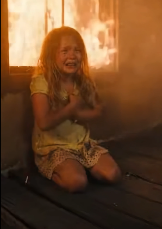She backed toward the window, coughing, eyes wide with fear. In her arms, she clutched a stuffed bear so tightly her knuckles turned white. It was the only thing she knew to hold onto.