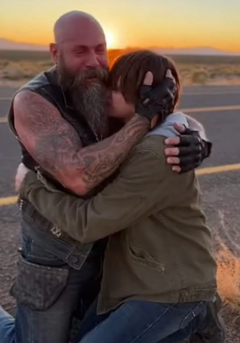 The biker didn’t care who was watching. He didn’t care how it looked. In that moment, being strong meant being honest. It meant choosing family over pride, tears over silence.