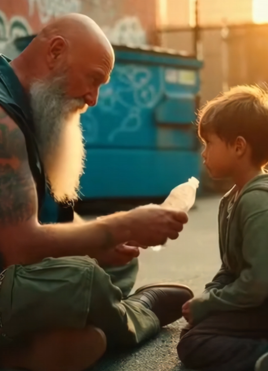 The biker killed the engine and took off his helmet. The boy didn’t move. He just stared, guarded in that way kids get when they’ve learned not to expect help to stick around.