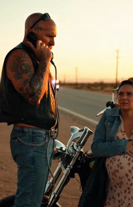 A woman leaning against the side of the car, gripping the door with one hand and pressing the other against her stomach. Her breathing wasn’t steady—it was sharp, uneven, like every inhale had to fight its way in.