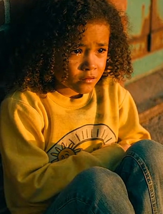 The girl stood a few steps away, hands clasped tightly in front of her, eyes fixed on the ground. Her posture was stiff, like she was bracing herself for something she already expected.