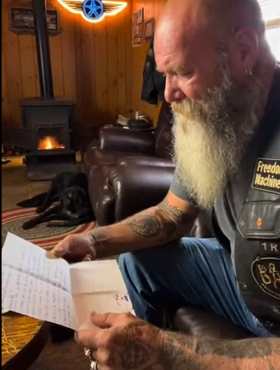 The biker didn’t make it to the end of the letter before his vision blurred. Tears dropped onto the paper. He didn’t wipe them away. He didn’t try to stop them. His shoulders shook as quiet sobs filled the empty room.