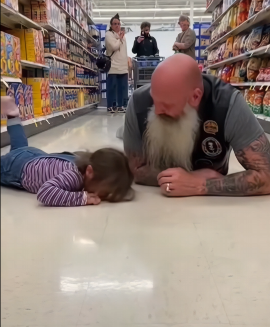 “It’s okay,” the biker said gently as he knelt so they were eye to eye. “You’re safe.”