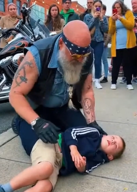 Without hesitation, the biker parked his motorcycle on the shoulder and ran toward the boy, helmet still in his hand. He didn’t wait for instructions. He didn’t scan the crowd for someone else to take control.