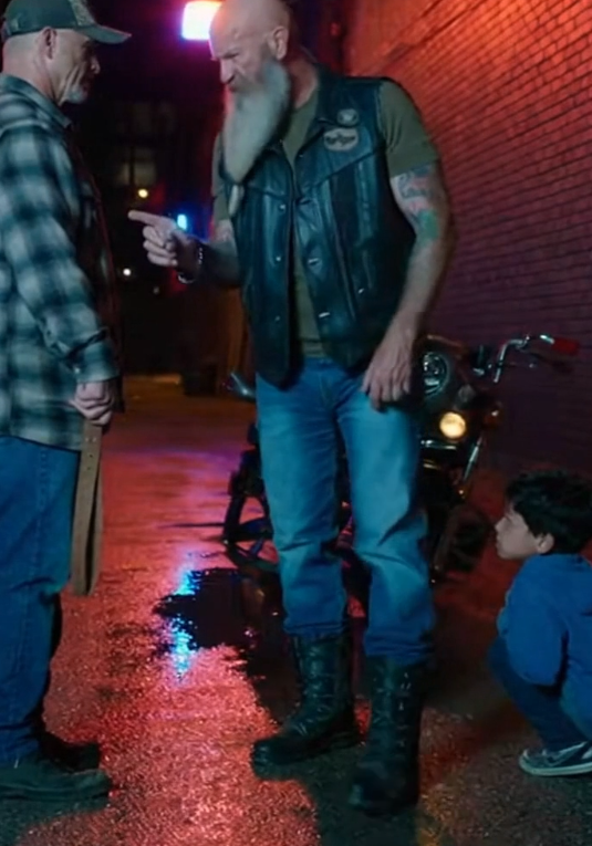 The biker shut off the engine and took off his helmet. He didn’t rush in yelling. He didn’t posture. He watched first. The boy’s stiff posture. The object still clenched in an adult’s hand. The way responsibility had been twisted into an excuse for violence.