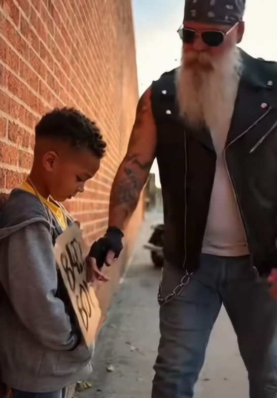 The biker wasn’t hunting for trouble. He was riding through town, engine rumbling steady beneath him, thoughts on the road ahead. But some things don’t fade into the background. A sign like that doesn’t blend in. Not when it’s hanging off a kid.