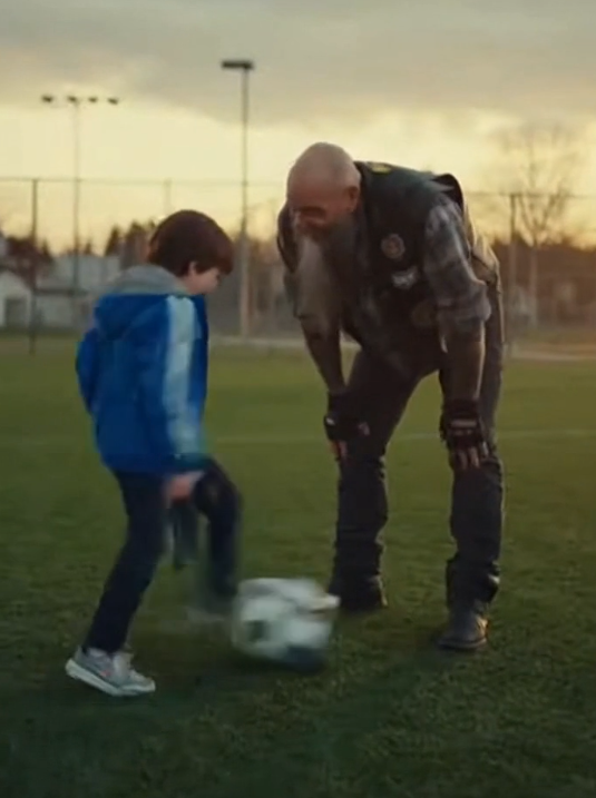 They started slow. Just passing the ball back and forth. No pressure. No instructions. No teasing. The biker missed a few shots on purpose, groaning loudly every time.