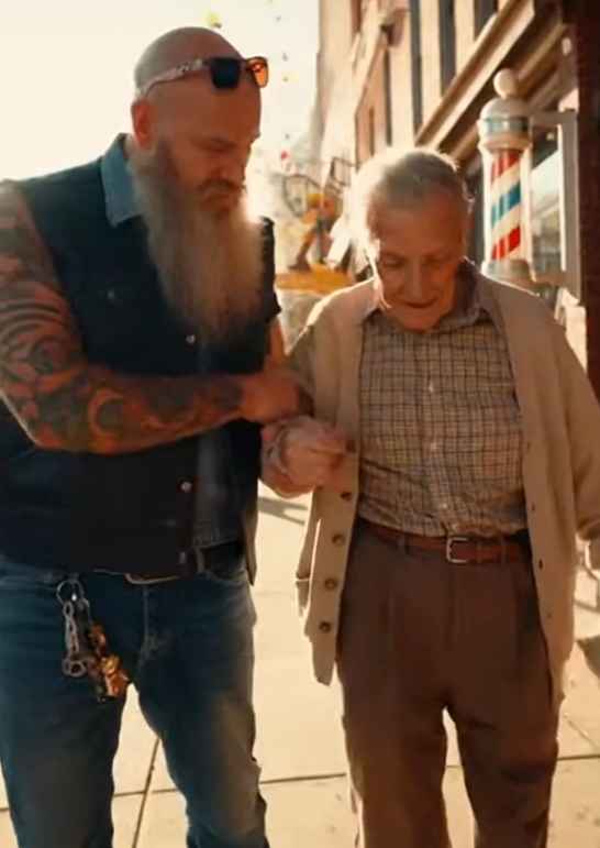 When the old man mentioned places that felt familiar, the biker offered to check them out. He helped him onto the motorcycle, steady and careful, riding slower than usual. They stopped at streets the man half-recognized, buildings that stirred something but didn’t quite click.