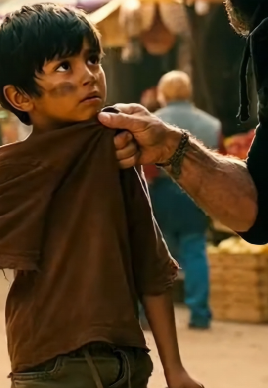 In the middle of the chaos, a boy stood frozen. He couldn’t have been more than twelve years old. His collar was twisted tight in someone else’s fist, fabric pulled so close to his throat that it wrinkled under pressure. His body stayed still, not because he wasn’t scared, but because fear had already told him movement might make things worse.