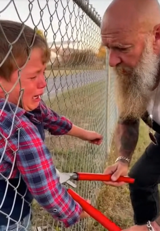 A small crowd had formed by now. People stood shoulder to shoulder, watching a big, tattooed biker kneel by a fence, working slowly and carefully to free a child.