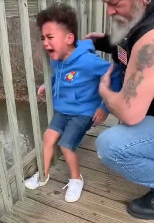 The biker didn’t make the boy feel embarrassed or small. He didn’t scold him or ask why he was there. He focused on one thing only: getting a scared child safely back onto solid ground.