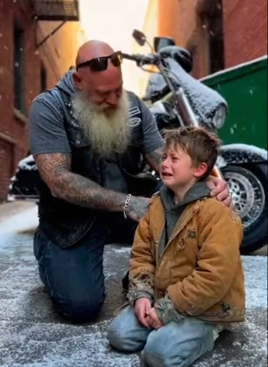 The man was a biker. Broad shoulders. A worn leather vest marked by years on the road. A beard touched with gray. He’d seen long highways, bad weather, and harder stories than most people ever hear.