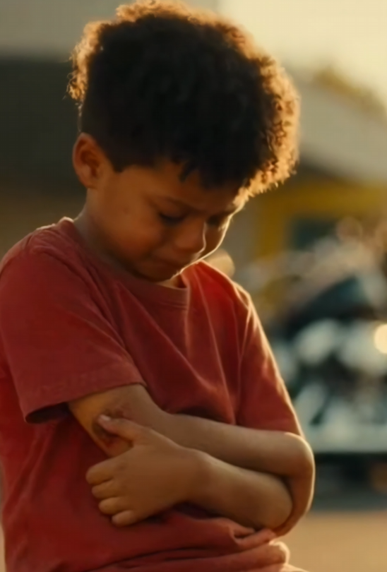 There he was—a small boy sitting alone on gravel, arms wrapped around himself like he was trying to hold something in. His clothes were worn, his posture guarded, and his eyes… too calm.