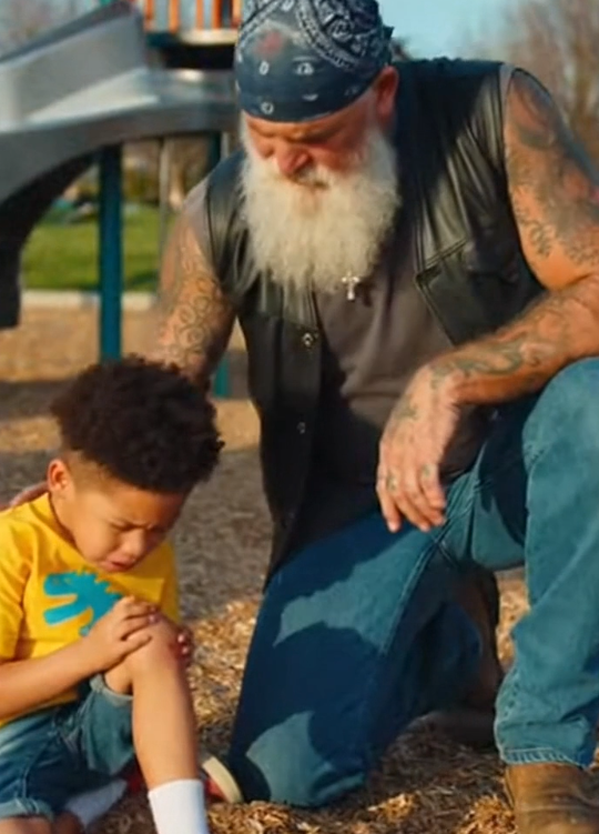 The boy flinched, then relaxed as the biker kept talking, shifting the focus away from the pain. He told quick stories about riding through small towns, about how bikes need care just like people do, about how even tough machines need fixing sometimes.