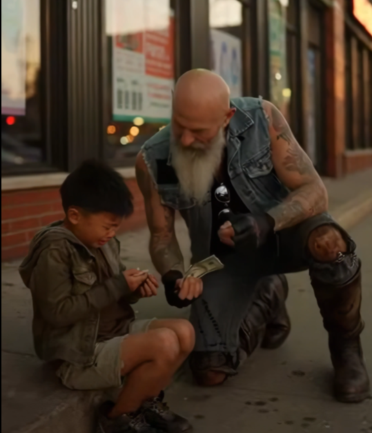 The biker had been reaching for his wallet when he heard that. His hand stopped mid-motion. He watched the boy scoop the money back into his pocket, shoulders dropping like he was trying to fold disappointment into something small enough to hide.