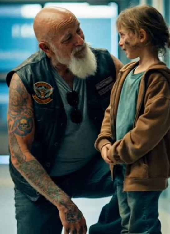 A motorcycle pulled up nearby, its engine cutting off smoothly. The biker removed his helmet and looked around, not searching for attention, just noticing the small details most people missed. He noticed the girl rubbing her arms even though the air wasn’t cold. He noticed her mom’s eyes—tired, worried, trying hard not to show it.