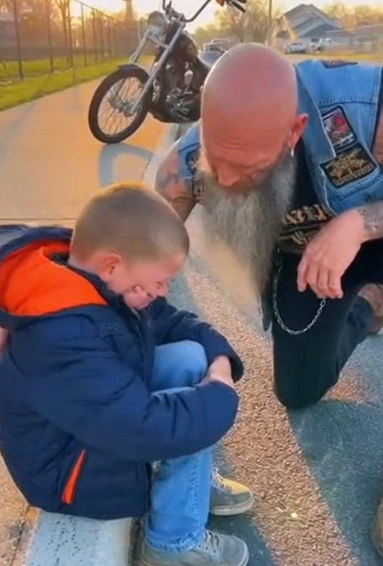 The kids froze, surprised more than scared. The biker stepped between them and the boy, his body language calm and certain, like a door that wasn’t going to open no matter how hard you pushed.
