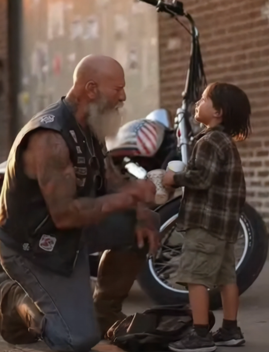 The boy stiffened as Jack approached, eyes locked on the patches stitched across his vest. Fear flickered across his face—the real kind. The kind kids learn too early.