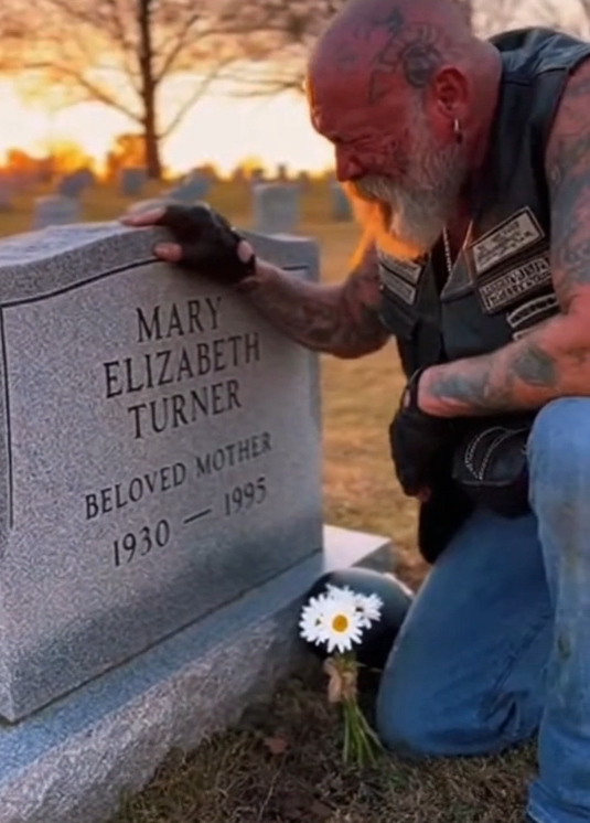 A biker walked slowly between the rows of headstones, helmet tucked under his arm. His leather jacket looked worn, not for style, but from years on the road. Every crease told a story. Every scratch had earned its place.