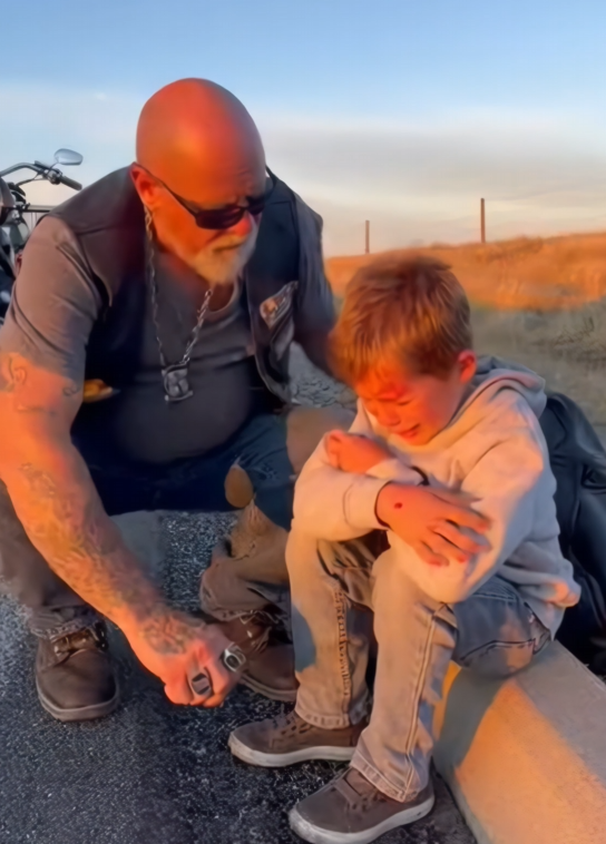 The biker didn’t argue. He didn’t lecture. He simply stayed right where he was, arm around the boy, until someone responsible stepped forward. Until it was clear the child wouldn’t be restrained again. Until safety was more than just a word.