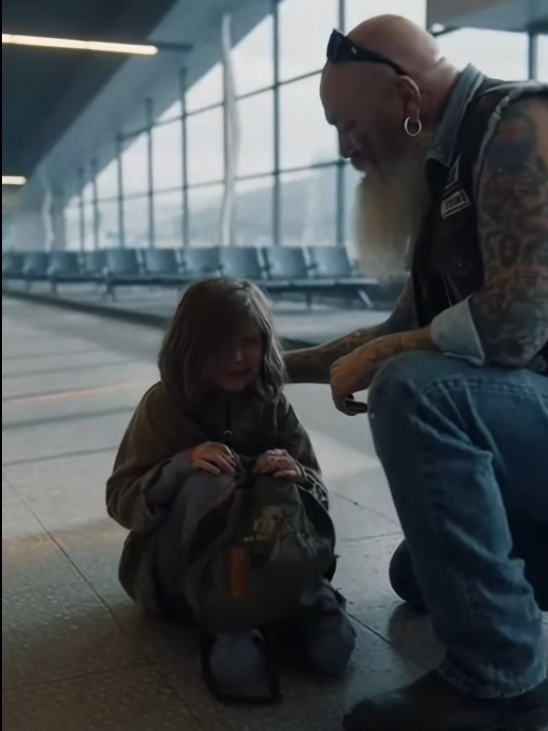 A biker walked into the terminal late that night, helmet in hand. His leather jacket was creased from the road, carrying the smell of wind and distance. He didn’t look like he belonged there. Too solid. Too grounded. The kind of man people glance at twice and then look away from.