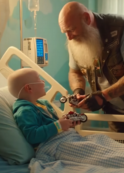 As the biker turned and walked toward the door, he didn’t ask for thanks or recognition. He simply put his helmet back on and left the room as quietly as he’d entered. But as he walked out, there was something lighter in the air. The boy wasn’t healed, but for that moment, the weight of the hospital room had lifted.