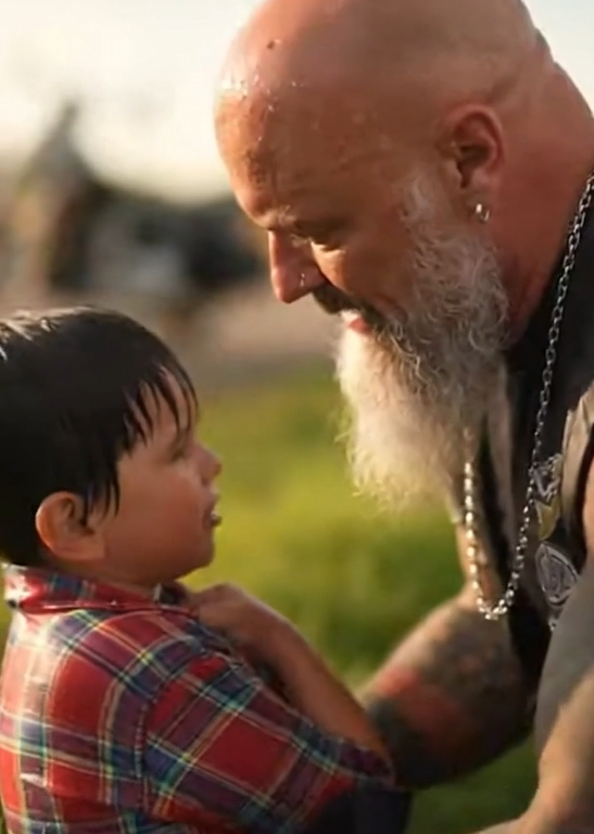 The biker leaned in close, keeping his voice calm and steady despite the chaos around them. He told the boy to breathe. To look at him. To hold on.