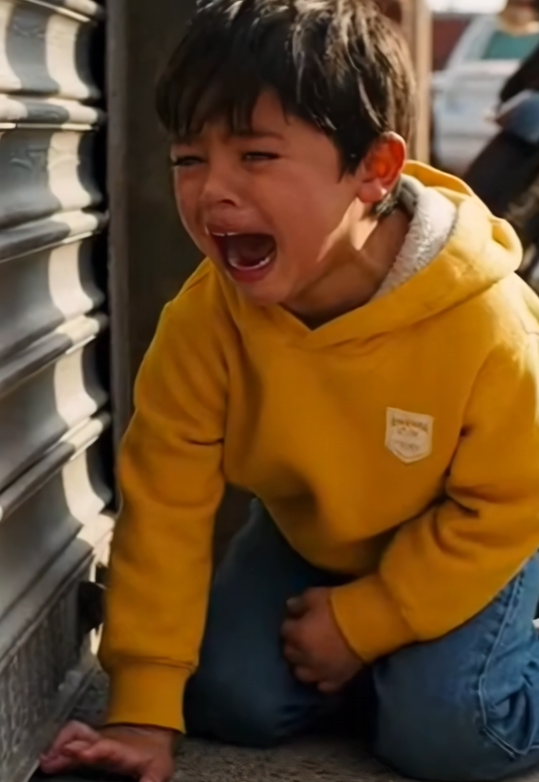Beneath the door stood a small boy, frozen in place. His arm was trapped where steel met frame. His eyes were wide, his breath caught somewhere deep in his chest. Panic hung in the air like electricity.