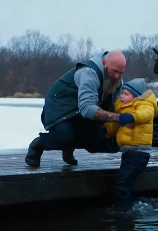 The biker felt the sudden pull and leaned back with everything he had, muscles straining as ice scraped loudly against the rope. The weight was heavier than he expected. The river didn’t want to give the boy back.