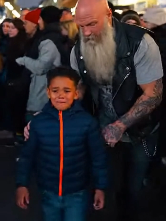 Moments later, the boy’s parents rushed over, faces tight with worry until they saw him standing safely at the edge of the crowd. Relief washed over them as they pulled him close, holding him tighter than before.