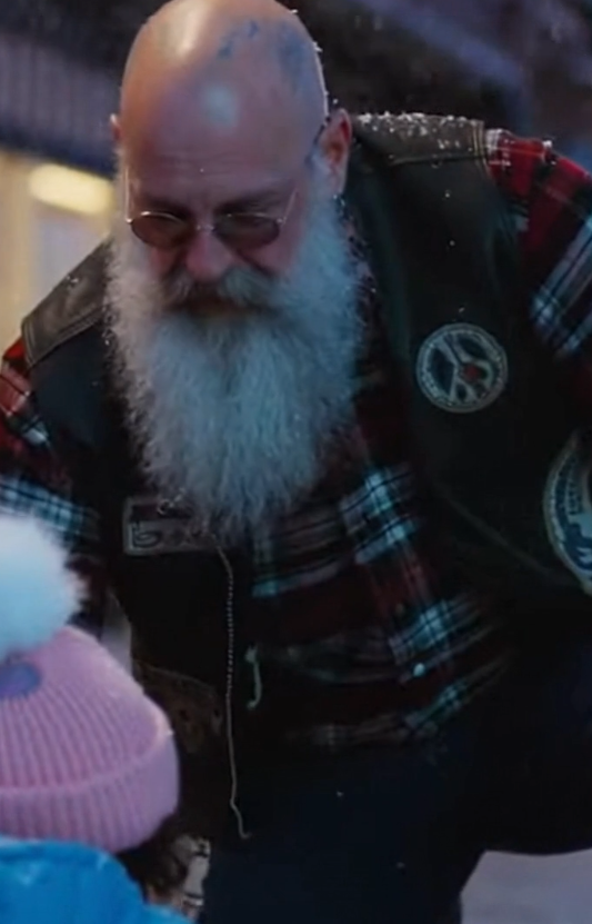 The man was big, with a thick beard and a leather jacket dusted with snow. His breath formed clouds in the freezing air as he hurried toward the girl.