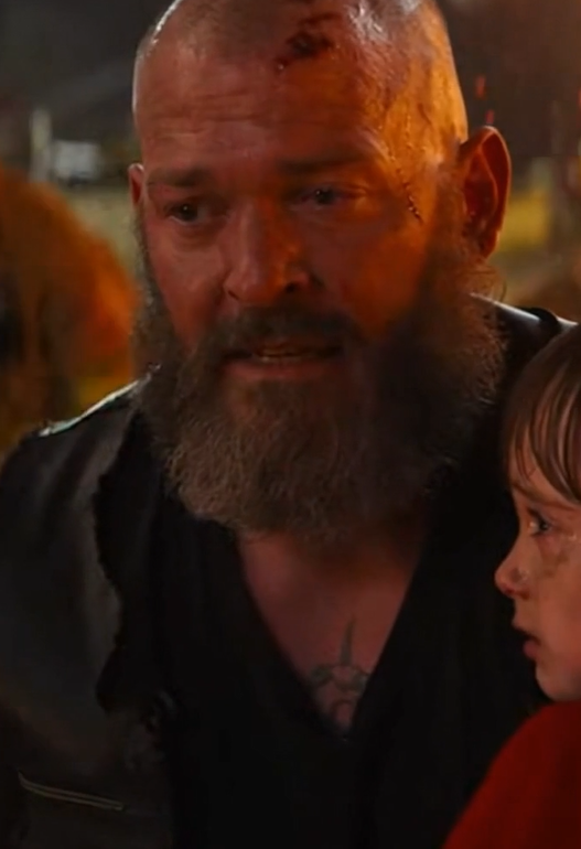 Someone tried to wrap a blanket around the biker’s shoulders. He waved it away. He looked down at his ruined jacket, then back at the boy—safe now, crying against his mother’s chest.
