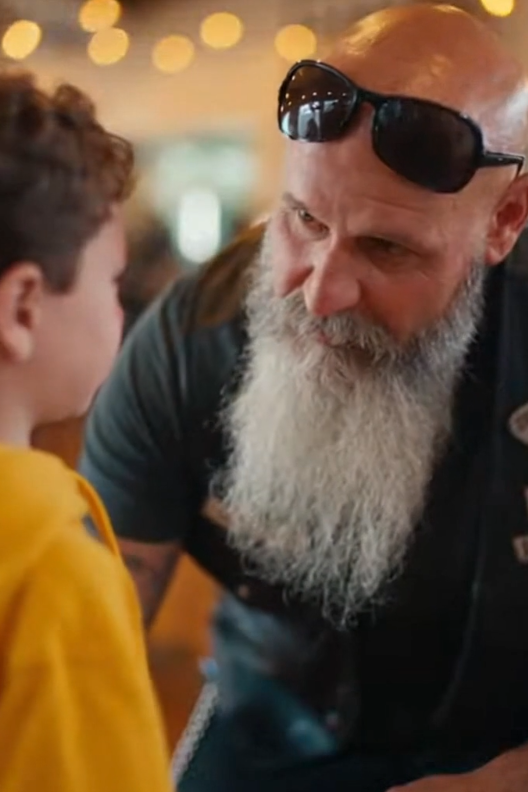 Before returning to his cart, the biker leaned toward the boy and said something simple:
